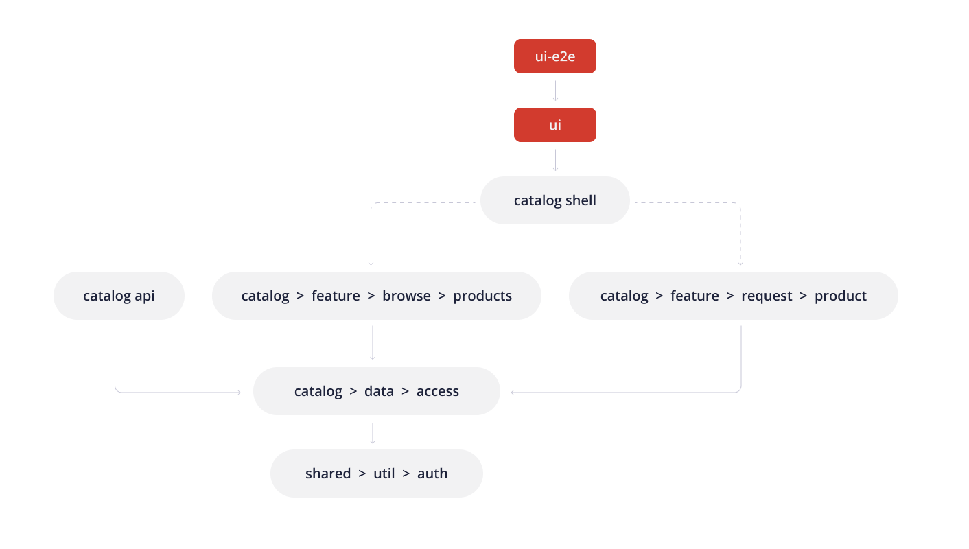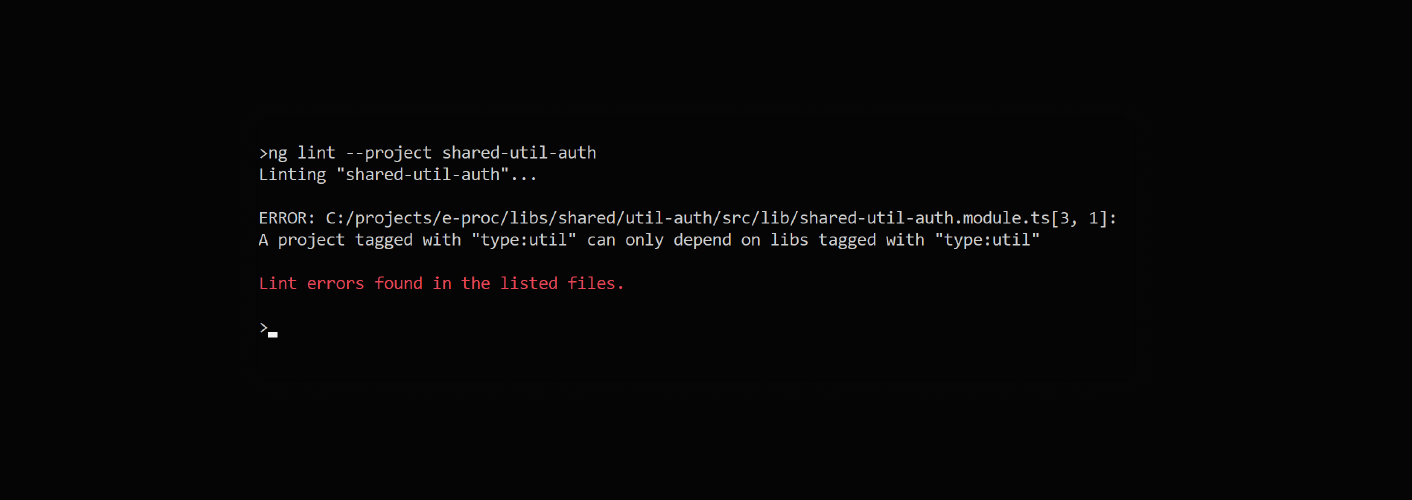 The shared vocabulary of these domains must be used by any of the participants to provide correct communications between layers. The CLI extension Nx offers a sophisticated method to perform these domains with different domain-grouped libraries to achieve these goals. It allows to establish access restrictions for other domains and to reduce dependencies via setting access restrictions to individual libraries. Thus, with these access restrictions, you may create a loosely coupled system with ensured features of the weak effect of the only change. (see http://g.co/ng/security#xss)