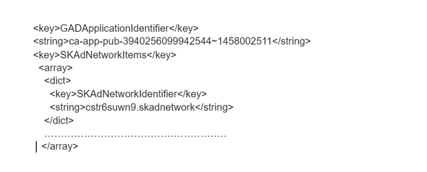 The same value must be passed when you initialize the plugin in your Dart code. It's a mandatory requirement. | Network | SKAdNetwork Identifier |